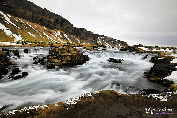 這個景點也是瀑布,原本可以開車上去的路封住,所以必須自行步行約1.8公里的距離,這個黑色瀑布又稱玄武岩瀑布很美,可是竟然沒有人願意走.....這也是冰島的大景點,最後只有宛君跟我去,其他人在停車場等