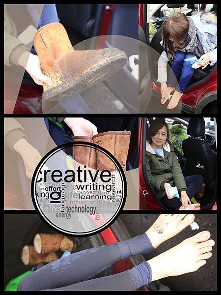 褲子鞋子全濕了,更慘的是全部都是黑色沙子,整個要清理都很難清....